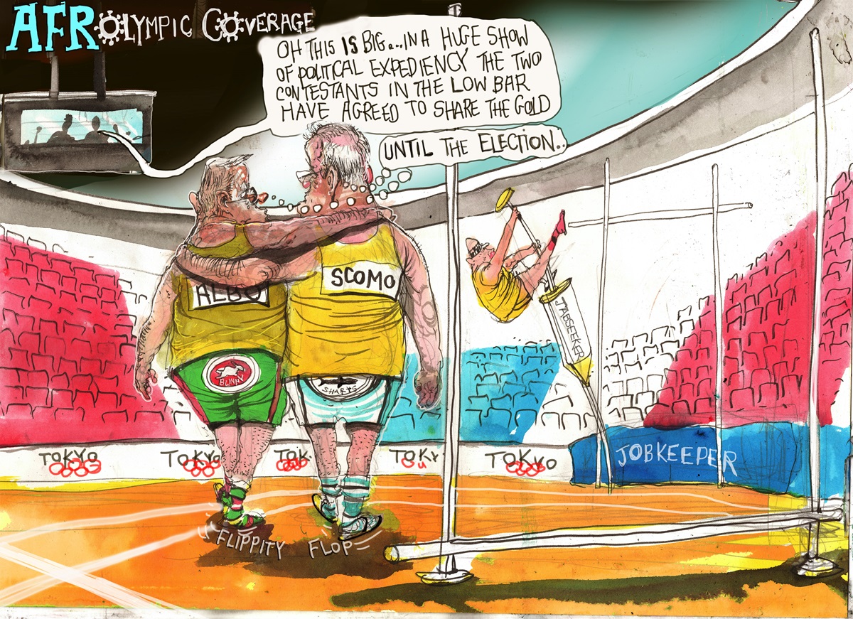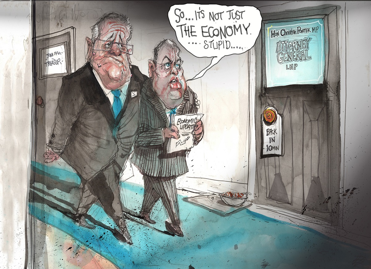 David Rowe is a Sydney-based cartoonist and caricaturist whose works appeared in The Canberra Times, The Independent (London), and The Times Literary Supplement before he joined The Australian Financial Review as editorial cartoonist 31 years ago. He has four Walkley and 25 Stanley Awards to his credit, including nine Golden Stanleys, and was MoAD's Political Cartoonist of the Year in 2013 and 2017.