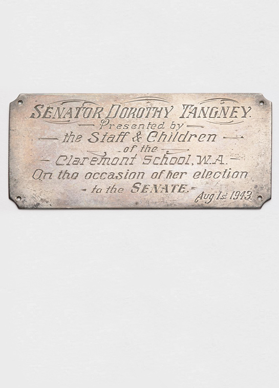 This plaque signifies Dorothy Margaret Tangney becoming Australia's first woman senator.