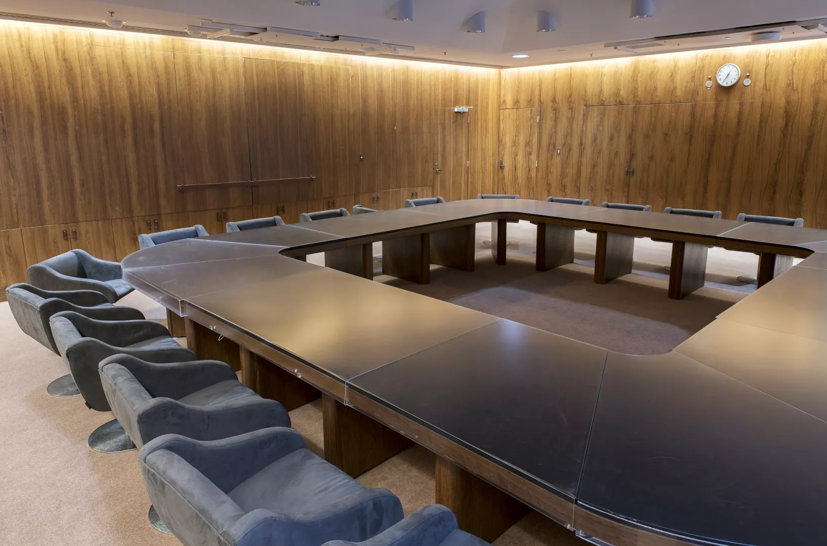 You can visit the Prime Minister's Suite and see the table in the Cabinet Room. You'll notice that the table, which has 16 segments that fit snuggly together and can seat up to 28, has small white buttons on the edge of the table, these were used to summon the Cabinet Room Attendant. As for where everyone sat, the prime minister sat in the centre of the side of the table furthest from the door with the deputy prime minister sitting on his right. Their chairs were no different from any of the others surrounding the table despite their important roles.
