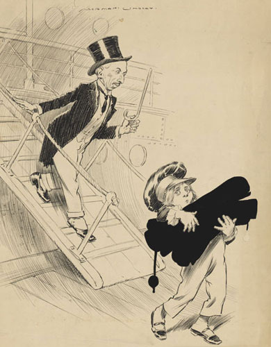 Compare this caricature of Billy Hughes to his photograph. Look at his facial features, expression and how he is standing. How has the cartoonist chosen to draw him?